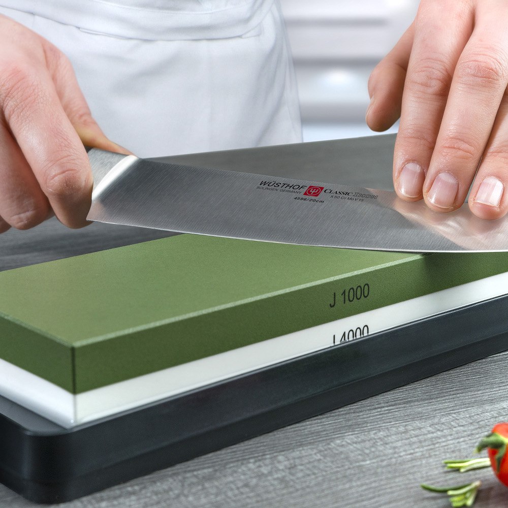 Abziehsteine von unterschiedlichen Herstellern bestehen in der Regel aus einer hochwertigen Kombination aus verschiedenen Schleifkörnungen. Diese spezifischen Steine haben zwei unterschiedliche Seiten: eine mit grober und die andere mit feiner Körnung. Die grobe Seite dient zum Vorschliff und wird verwendet, um Unebenheiten abzuschleifen. Die feine Seite ist für den Feinschliff zuständig mit dieser wird das Messer geschärft und die Schneide zusätzlich poliert. Hier gilt: je feiner der Abziehstein, desto feiner auch der Schliff.
